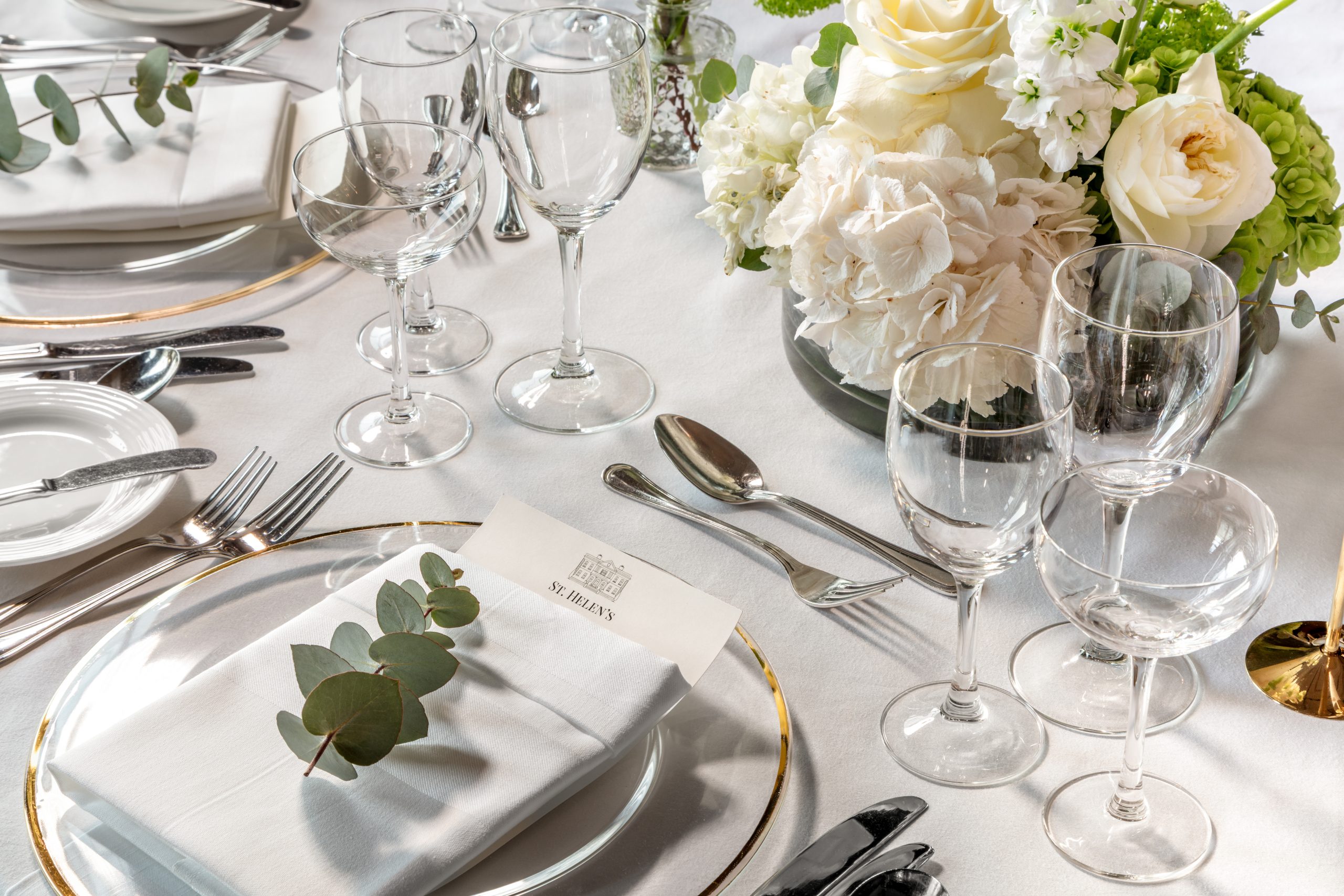 The Pembroke Suite is the largest event space at St. Helen’s, perfect for couples planning a big celebration. Hosting up to 300 guests, it offers natural daylight, chandeliers, and a private bar. The generous layout accommodates dining, dancing, and live music, allowing your day to flow seamlessly from ceremony to evening celebration.